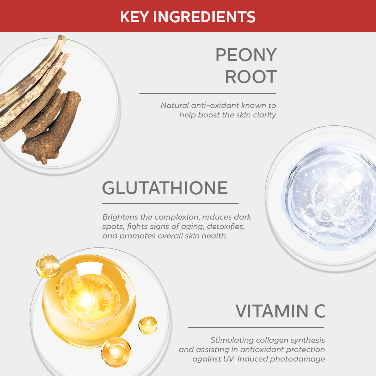 Aqua, Glycerin, Butylene Glycol, Betaine, Cetyl Alcohol, Dimethicone, Coco-Caprylate/Caprate, Trehalose, Propanediol, Hydrolyzed Jojoba Esters, Tocopheryl Acetate, Ethyl Ascorbic Acid, Arbutin, Acetyl Tyrosine, Saxifraga Sarmentosa Extract, Paeonia Suffruticosa Root Extract, Aminopropyl Ascorbyl Phosphate, Scutellaria Baicalensis Root Extract, Glutathione, Polyacrylamide, Sodium Sulfite, C13-14 Isoparaffin, Laureth-7, Allantoin, Citric Acid, Phenoxyethanol, Ethylhexylglycerin