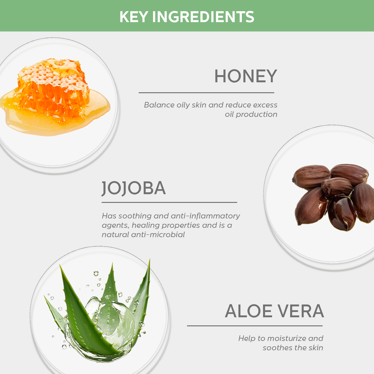 Contains natural honey that provides moisture and antioxidant properties to remove skin impurities without stripping off the skin’s natural oil. Refreshing and non-irritating face wash which provides nourishment and enhance elasticity to achieve naturally balanced skin.